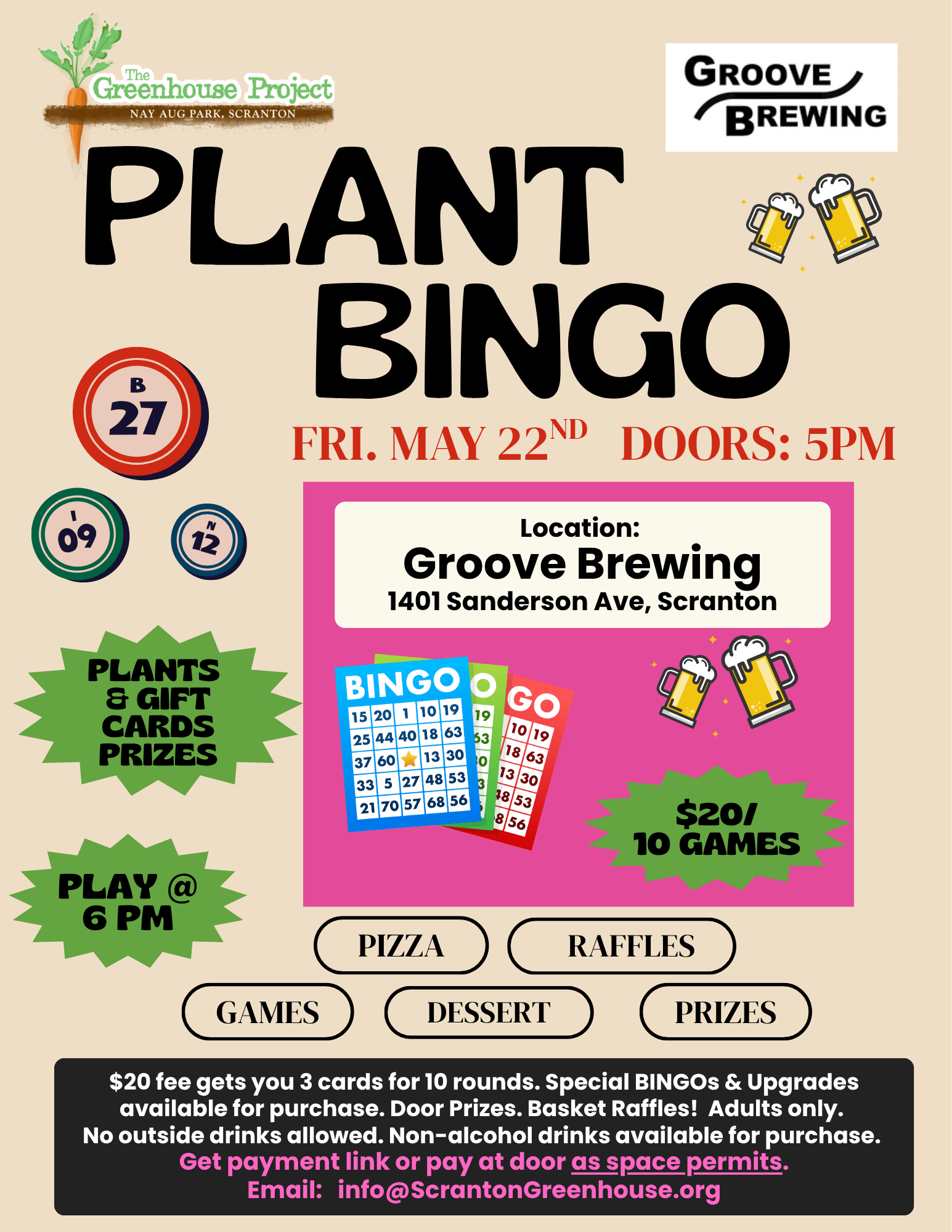 Groove Brewing 1401 Sanderson Ave., Scranton, PA, United StatesFUNdraiser at Groove Brewing Friday, May 22, 2026 Doors Open 5:00 pm | Games Begin 6:00 pm It's Plant Bingo time and the seats go fast - so register soon! […]