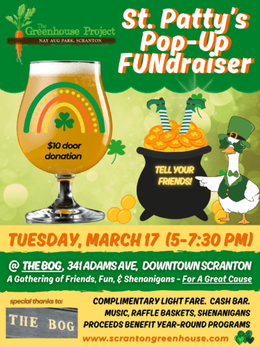 The Bog 341 Adams Ave., Scranton, United StatesAt The Bog! (341 Adams Ave., Downtown Scranton) Tuesday, March 17, 2026 5:00 - 7:30 pm Another great Greenhouse Project Pop up gathering/mini FUNdraiser for the Greenhouse Project's educational Programs. […]