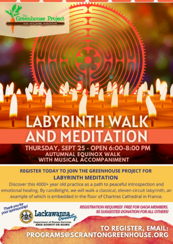 Candlelight Labyrinth Walk & Meditation Celebrate the Autumnal Equinox! Thursday, September 25, 2025Â Â (6:00 - 8:00pm) Register today to join The Greenhouse Project for a Labyrinth Walk & Meditation at Covenant Presbyterian Church in Scranton. This event will feature live musical accompaniment for additional relaxation. Discover the labyrinth as a path to peaceful introspection and […]