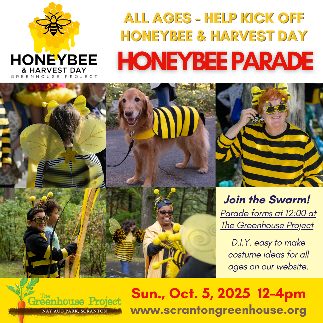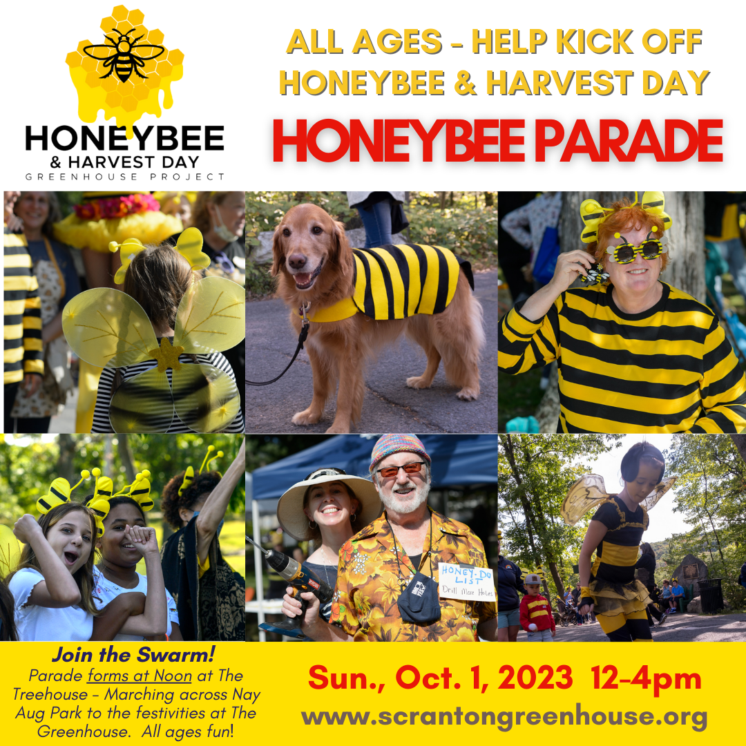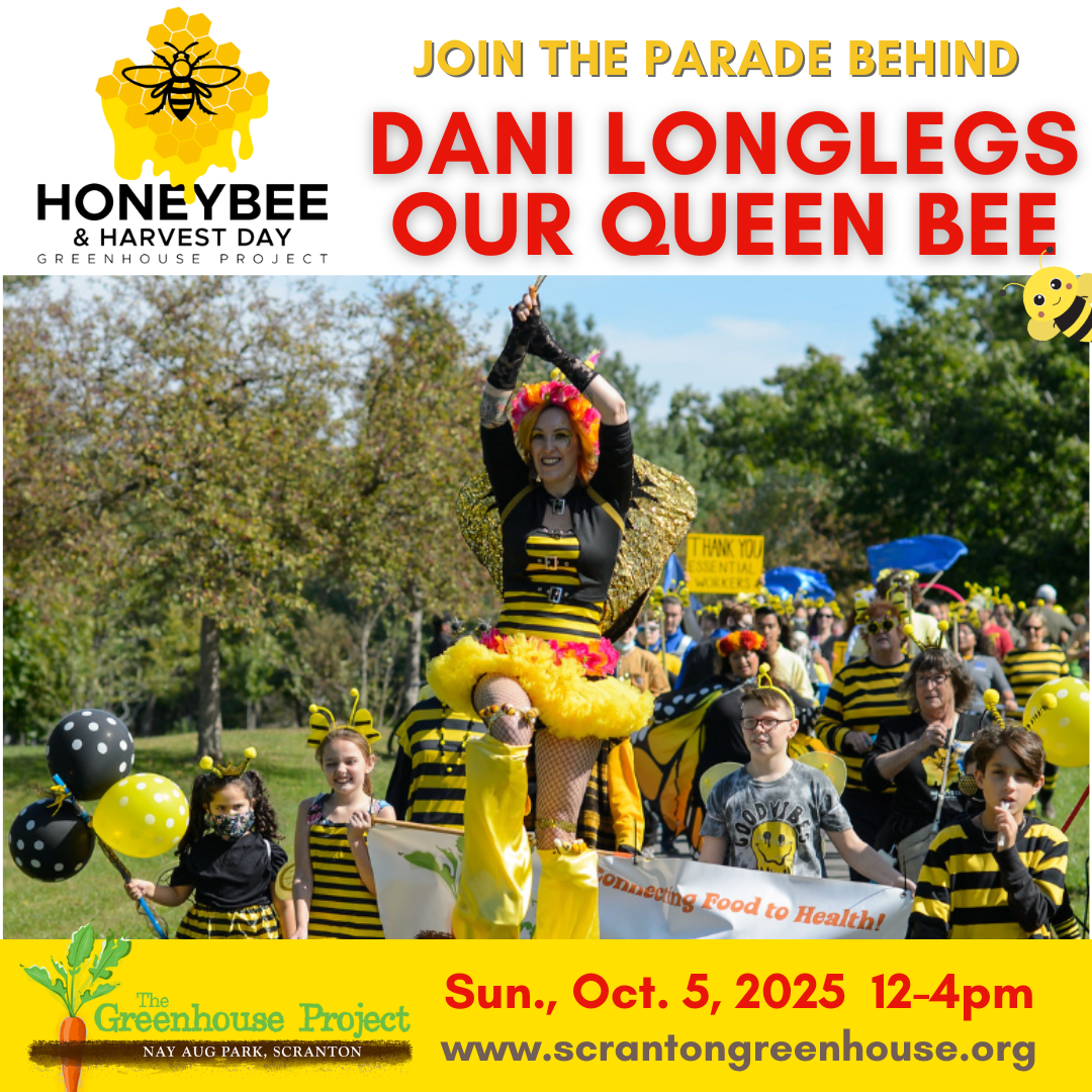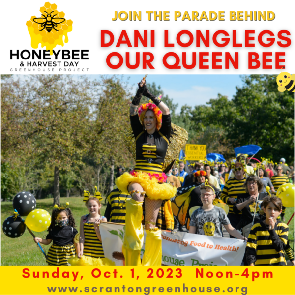 Get your costumes ready to salute our pollinators and the beauty of the harvest. Fly behind our Queen Bee, Dani LongLegs, and the Howard Gardner School Marching Band. Stay around afterwards for photos with The Queen!